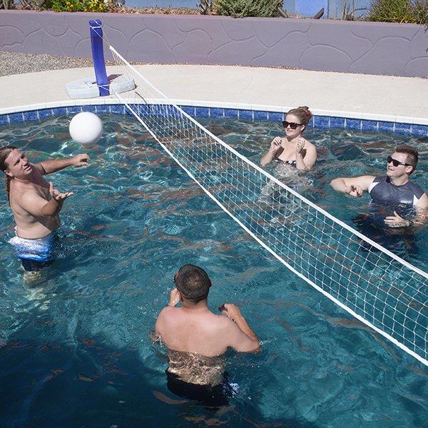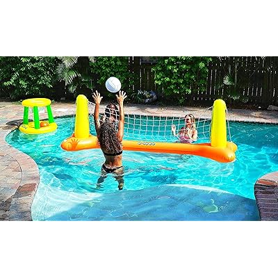 Inflatable pool float set volleyball net & basketball hoops balls for kids and adults swimming game toy, floating, summer floaties, pool party, volleyball court (105x28x35) basketball (27x23x27) 4.2 out of 5 stars. Poolmaster pro rebounder poolside basketball game and volleyball game combo for swimming pools. You can only play either one or the other games. Polyform game bases for basketball or volleyball can be filled with water or sand for poolside stability Add a pool volleyball net or pool basketball hoop and you've got serious fun for all ages!